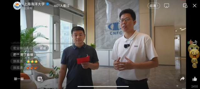 上海海洋大学党委常委、海洋生物资源与管理学院党委书记郑卫东,奉贤区金汇镇党群工作办公室四级主任科员闵晓燕,以及中水集团远洋股份有限公司、深圳联成远洋渔业有限公司、杨浦区缘聚青年社工师事务所等企业代表,学院教师代表、学生代表参加直播。