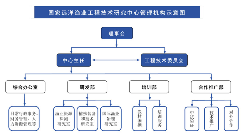 中心主要从事:远洋渔业领域高新技术及重大科技成果工程化应用研发;国外先进远洋渔业技术的消化、吸收和创新;高质量工程技术人才和工程管理人才培养与培训;组织国内外的学术、技术交流和国际合作;硕士、博士培养和博士后研究。中心针对远洋渔业全产业链的共性关键基础问题,重点开展高端探测装备与技术,智能捕捞与加工装备及系统、国际渔业治理技术等领域的研发,加快科技成果转化,实现我国远洋渔业捕捞技术水平的跨越式提升,确保我国远洋渔业可持续发展。